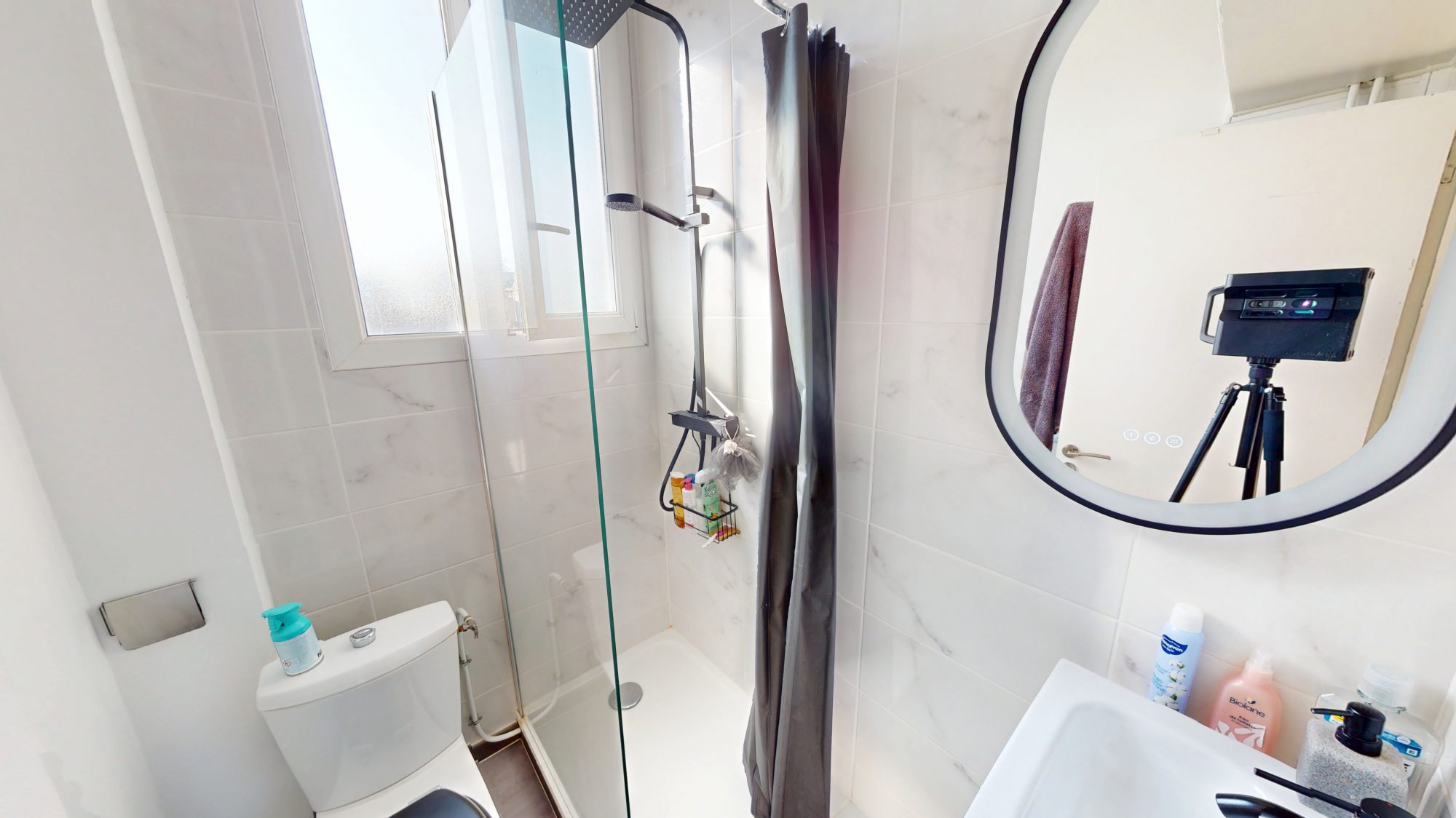 Il est au 1er étage d’une petite copropriété et se compose comme suit : une entrée, une salle de douche avec WC, une cuisine aménagée et équipée de 11,05 m2, un séjour de 11,9 m2 et une chambre de 11,8 m2.