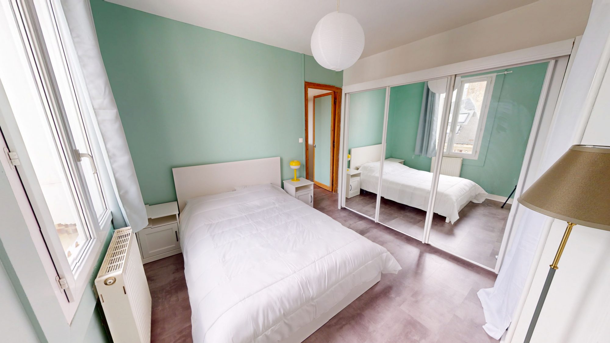 Il est au 3ème étage sur 4 et se compose comme suit : une entrée avec placard, à droite une cuisine aménagée et équipée, une salle de douches avec WC et lave-linge. À gauche, un séjour/salon et une chambre avec placards, dressing et literie neuve.