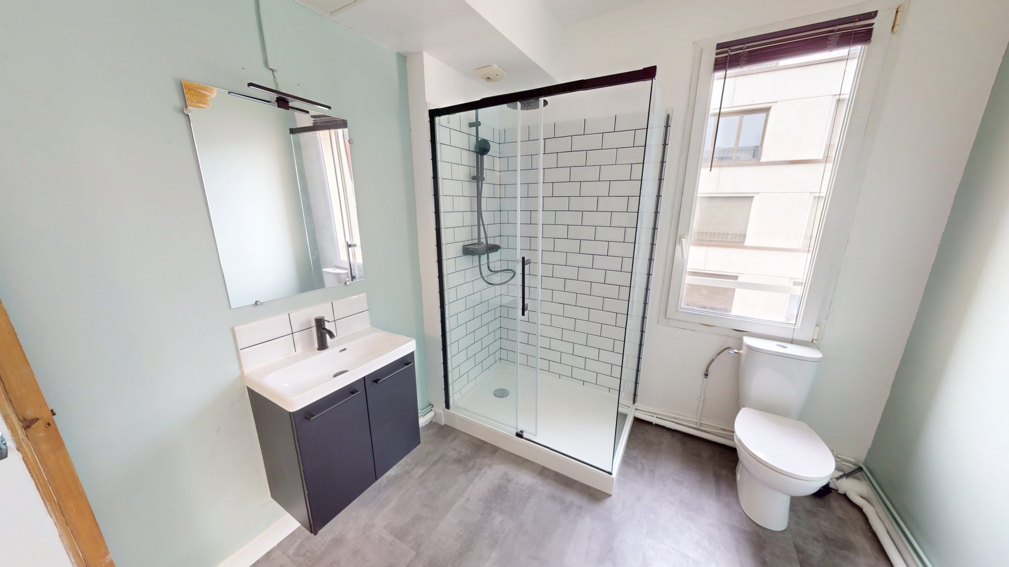 – Exposition traversante Est (séjour et chambre), Ouest côté salle de douche.