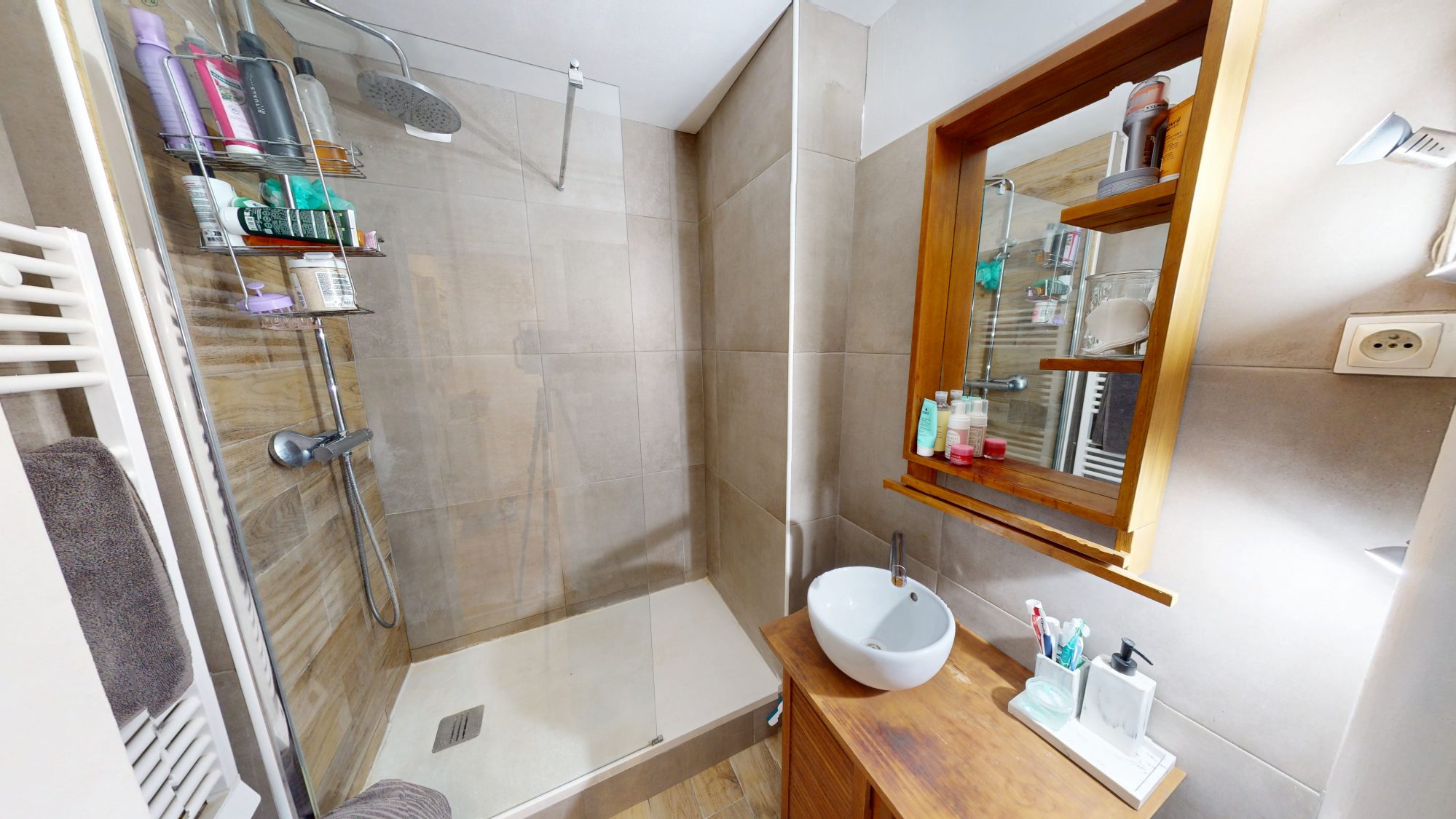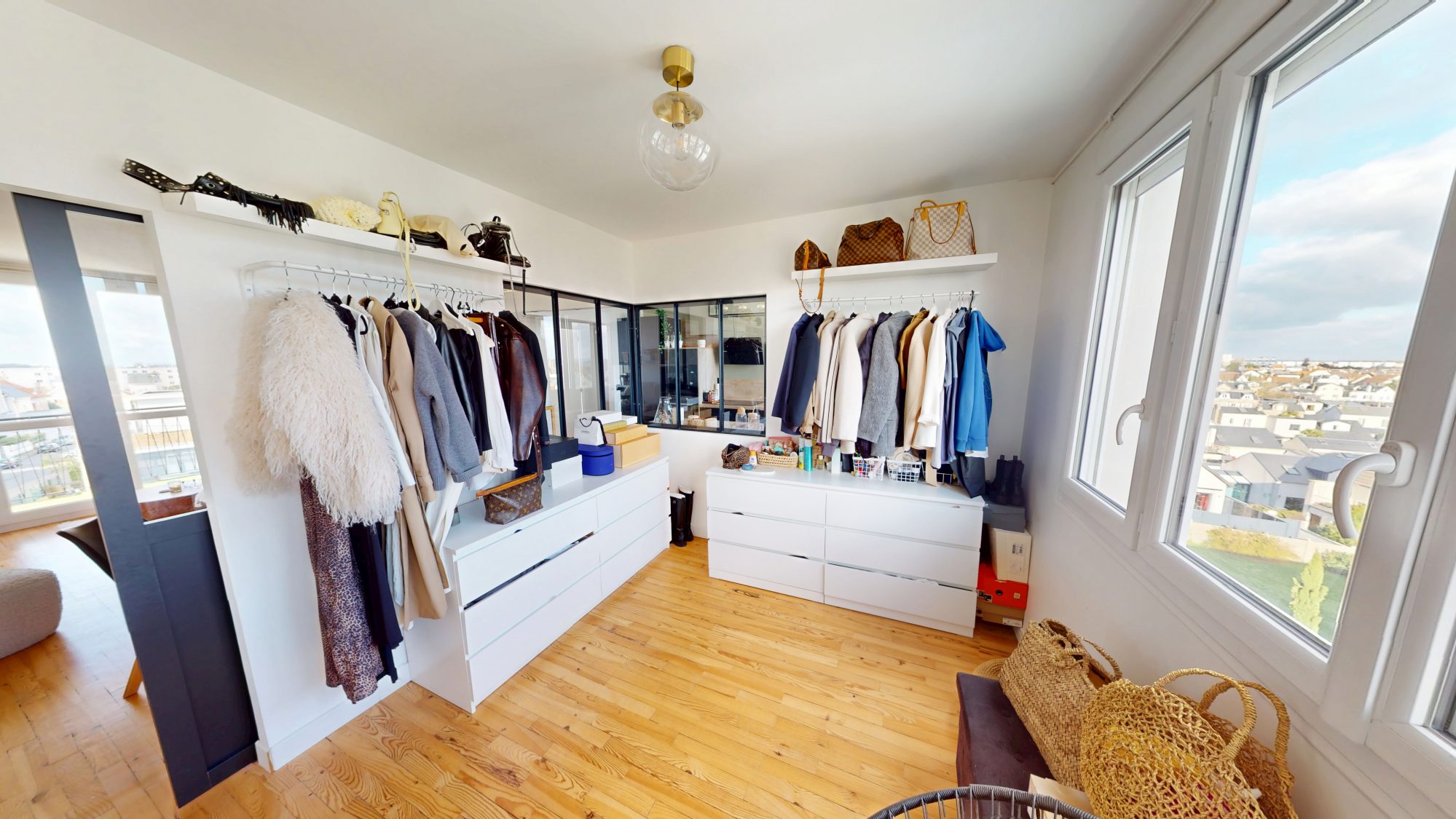 Il se compose comme suit : une entrée avec placard, une salle de douche, WC séparé, une chambre (9,59 m2), séjour/salon (17,5m2) donnant accès au balcon (5m2), une cuisine ouverte, un cellier et une chambre (9,5m2).