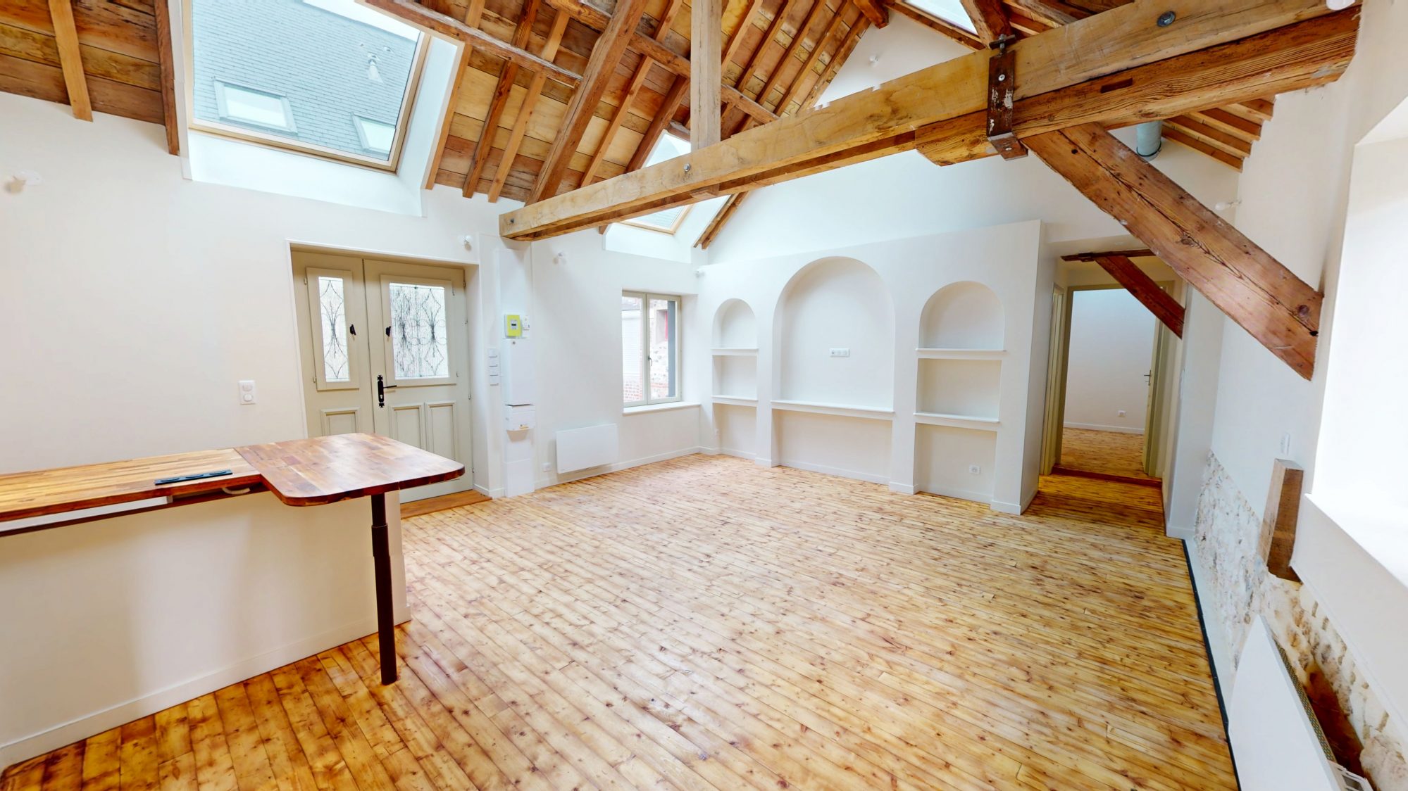 HONFLEUR – A 100M DE L’EGLISE SAINTE CATHERINE – ENTIÈREMENT REFAIT À NEUF – APT ATYPIQUE – 63M2 – UNE CHAMBRE + BUREAU – TERRASSE COMMUNE