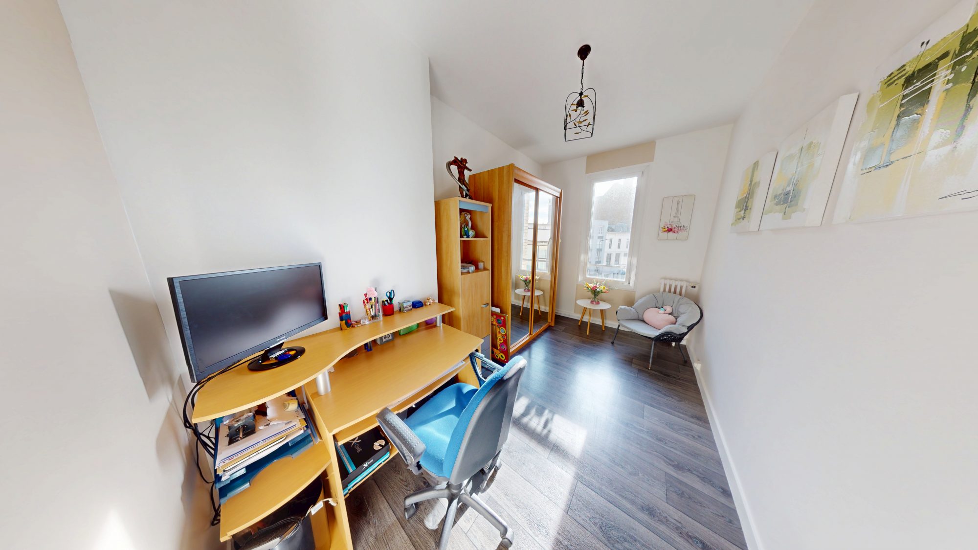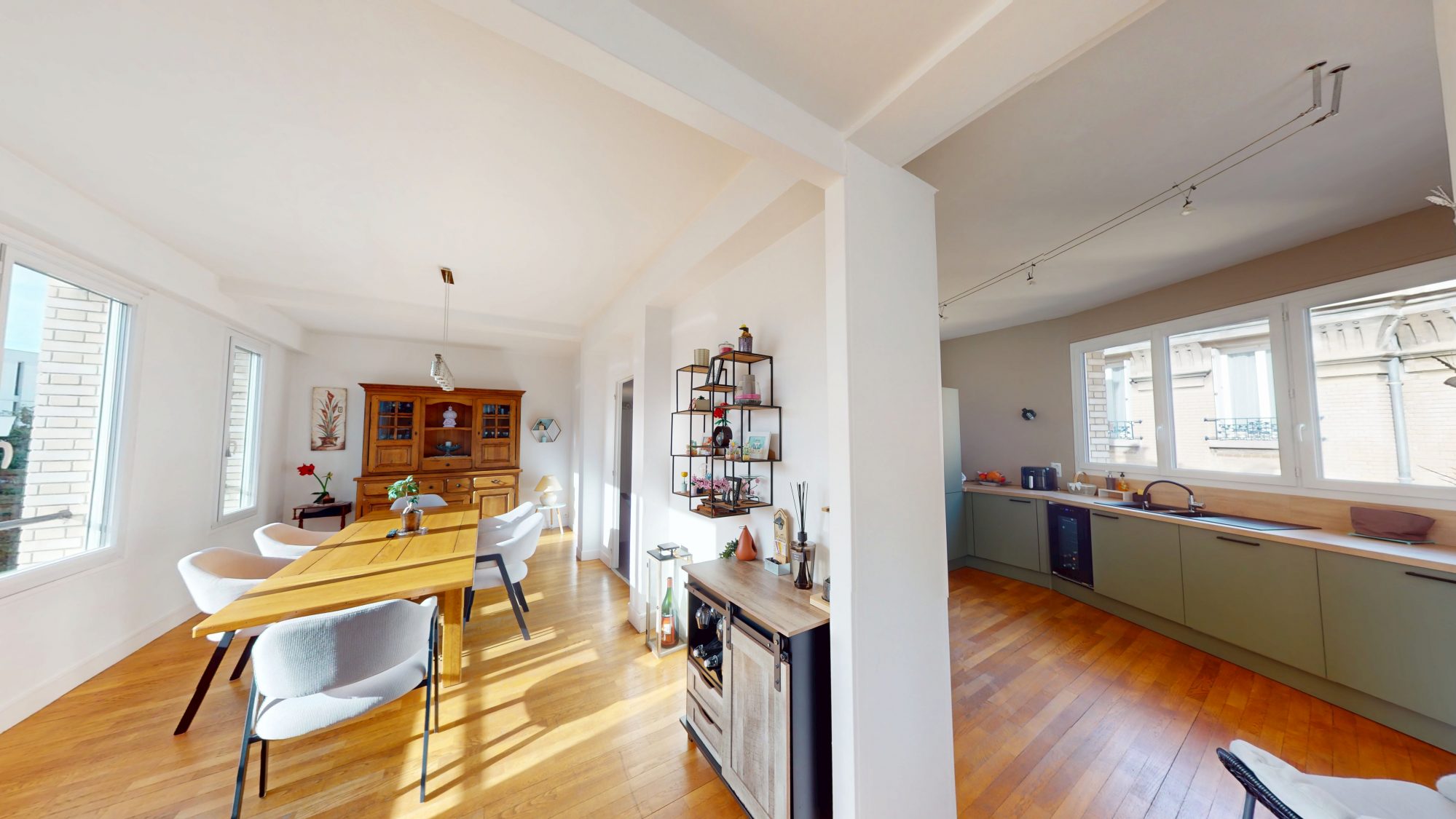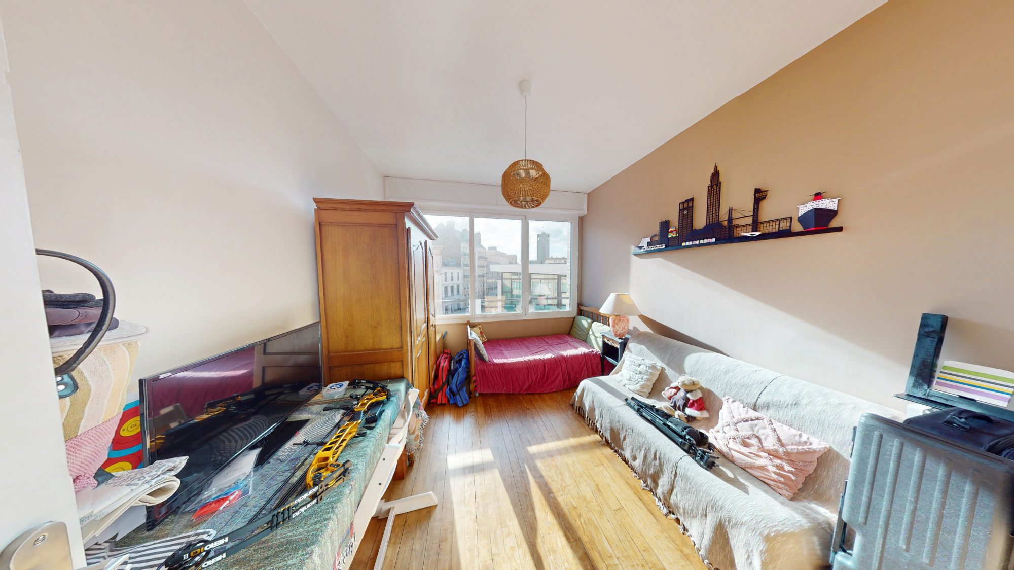 Très lumineux avec une exposition sud – ouest, vous profiterez d’un séjour sur balcon avec vue panoramique, semi ouvert sur la salle à manger et la cuisine, de 4 chambres, une salle de bain, une salle de douche (en suite avec la chambre parentale), et une buanderie.