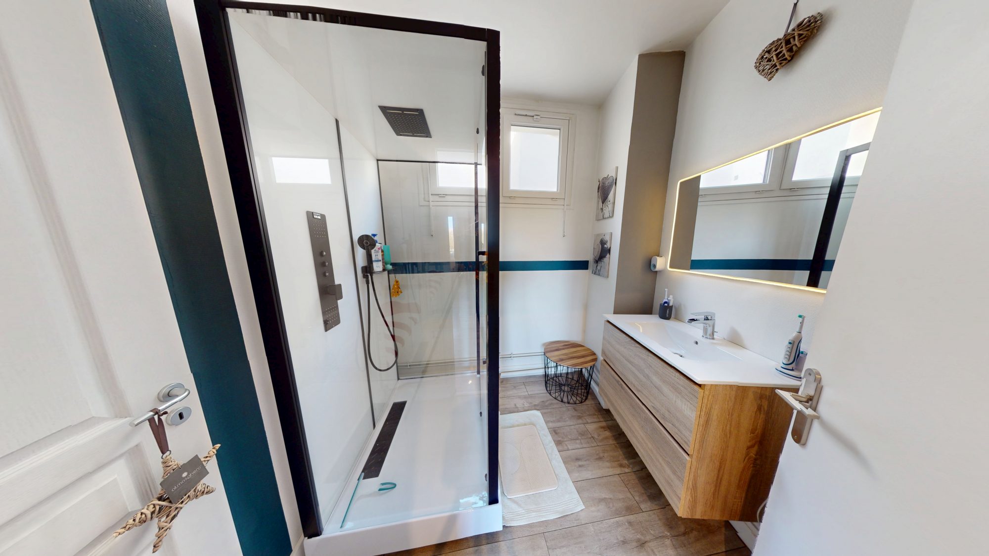 – une salle de bain, une salle de douche