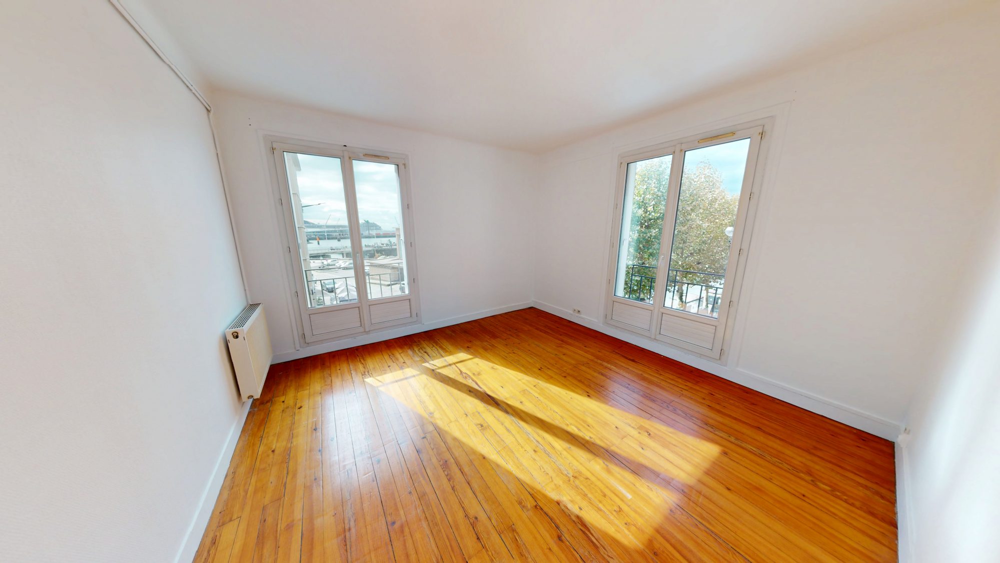 L’appartement bénéficie d’un séjour de 32 m2 plein sud, vue sur les bateaux de croisière, de 2 chambres de 20 et 12 m2, d’une grande cuisine de 18m2, d’une salle de douche (qu’on pourra agrandir) et d’un WC séparé. Il sera possible de créer une 3ème chambre dans le séjour.