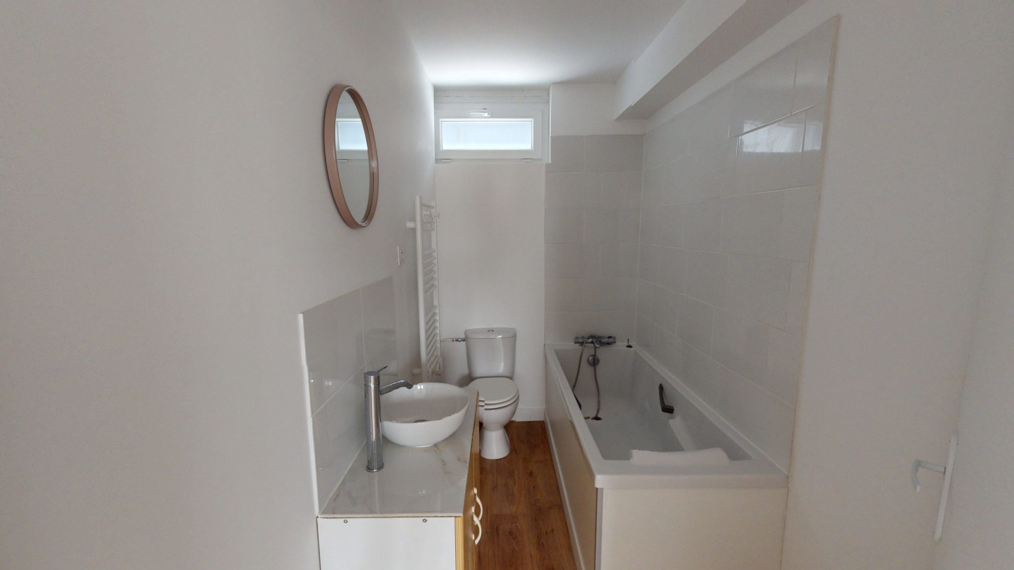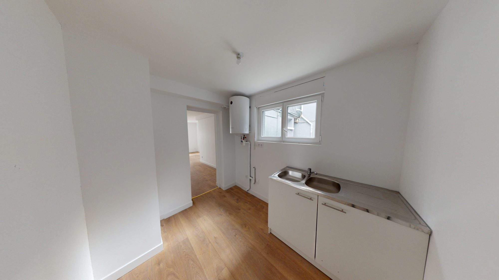 LHL Associés vous propose à la location cet appartement T2 entièrement rénové, situé en rez-de-chaussée, rue Hilaire Colombel, comprenant : séjour, cuisine aménagée d’un meuble évier, chambre, salle de bains avec wc.
