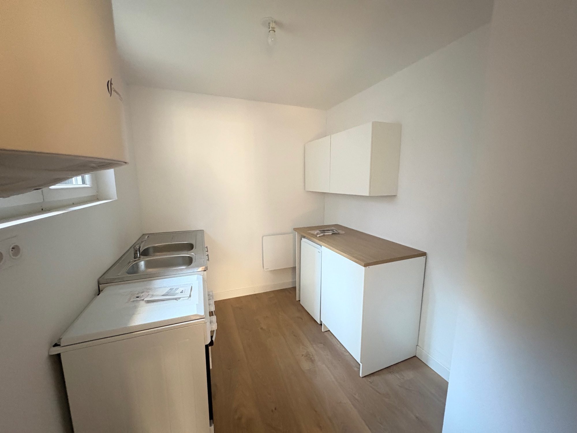 LHL Associés vous propose à la location cet appartement T2 entièrement rénové, situé en rez-de-chaussée, rue Hilaire Colombel, comprenant : séjour, cuisine aménagée et équipée de cuisinière (four/plaques) et d’un réfrigérateur, chambre, salle de bains avec wc.