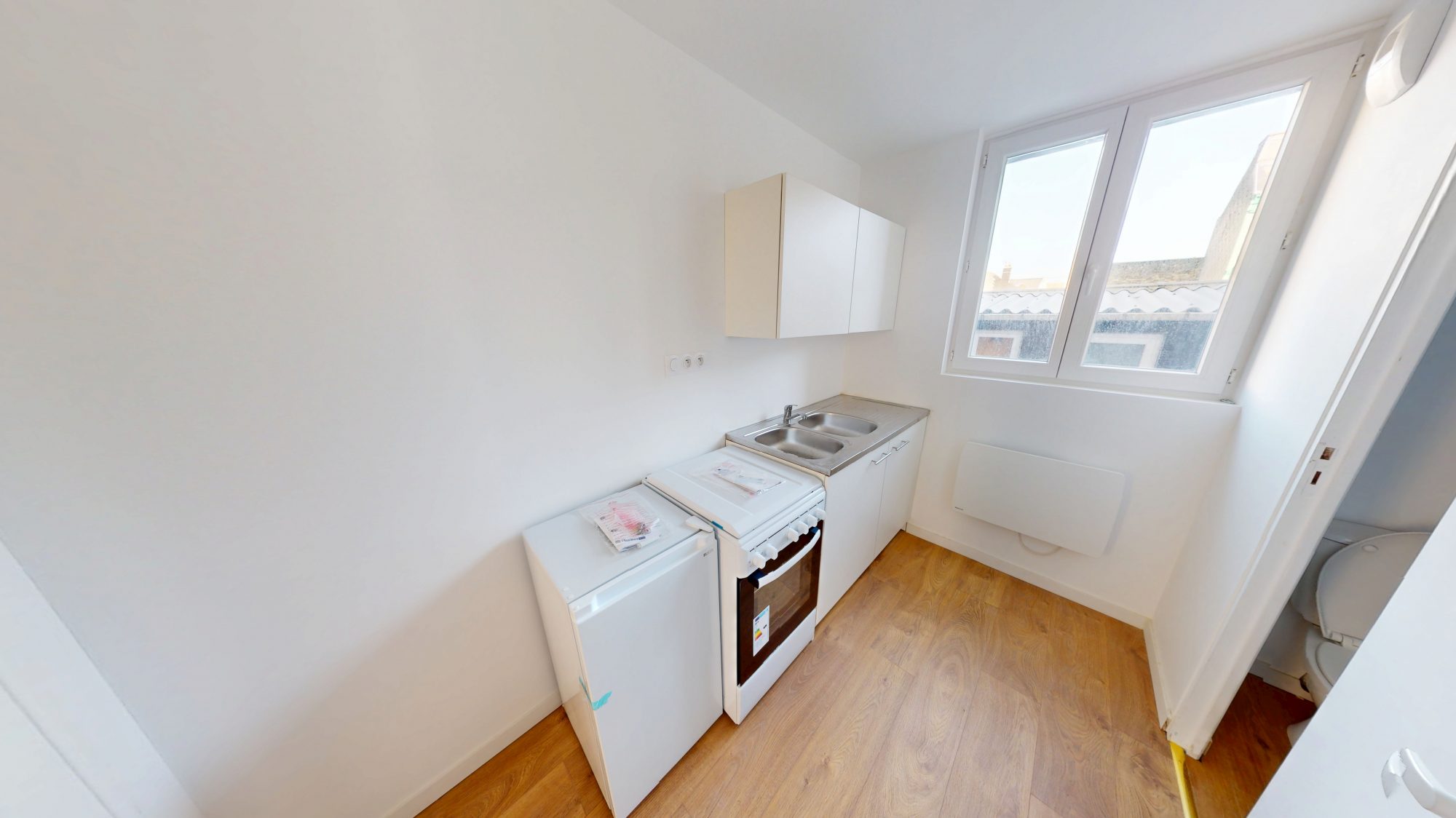 LHL Associés vous propose à la location ce F1, partiellement meublé, situé au premier étage, rue Hilaire Colombel, comprenant : pièce de vie, cuisine aménagée et équipée de cuisinière, réfrigérateur, salle de douche avec wc.
