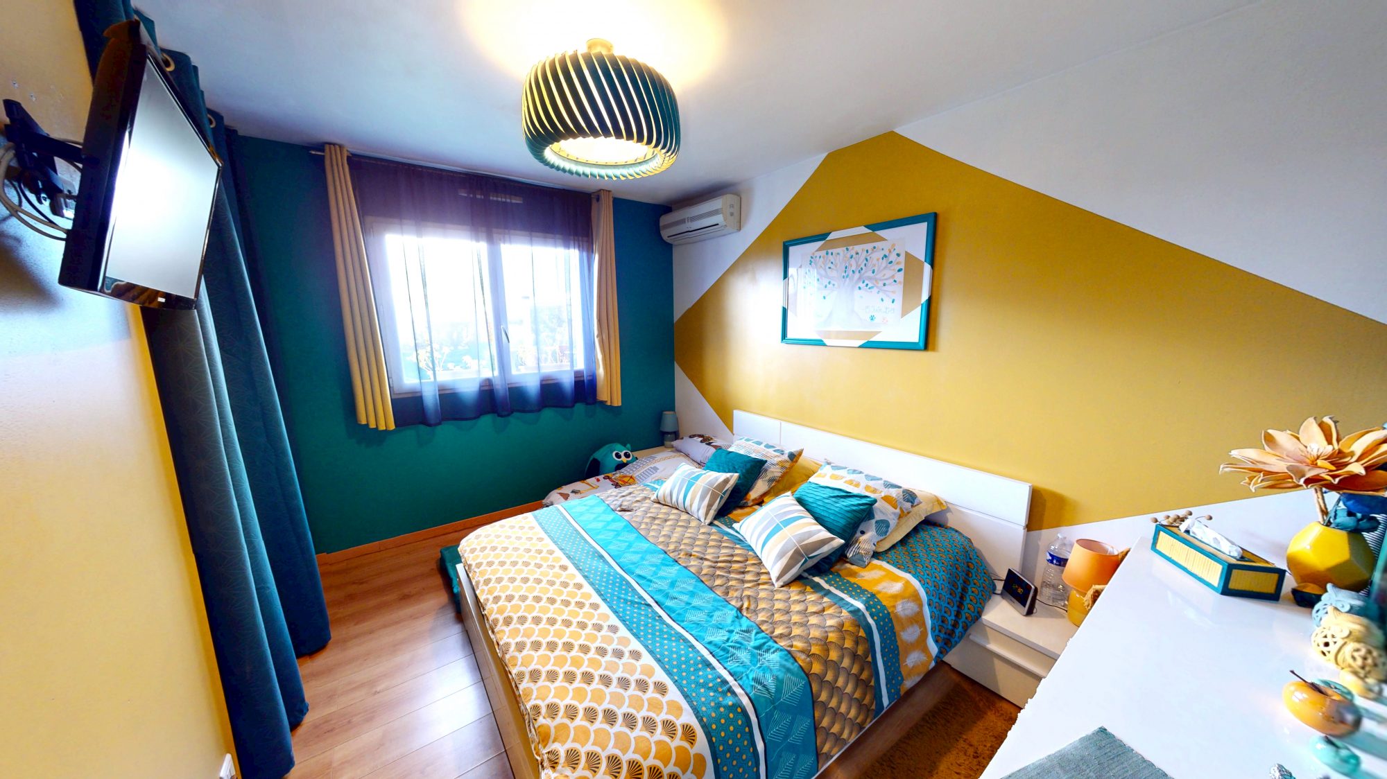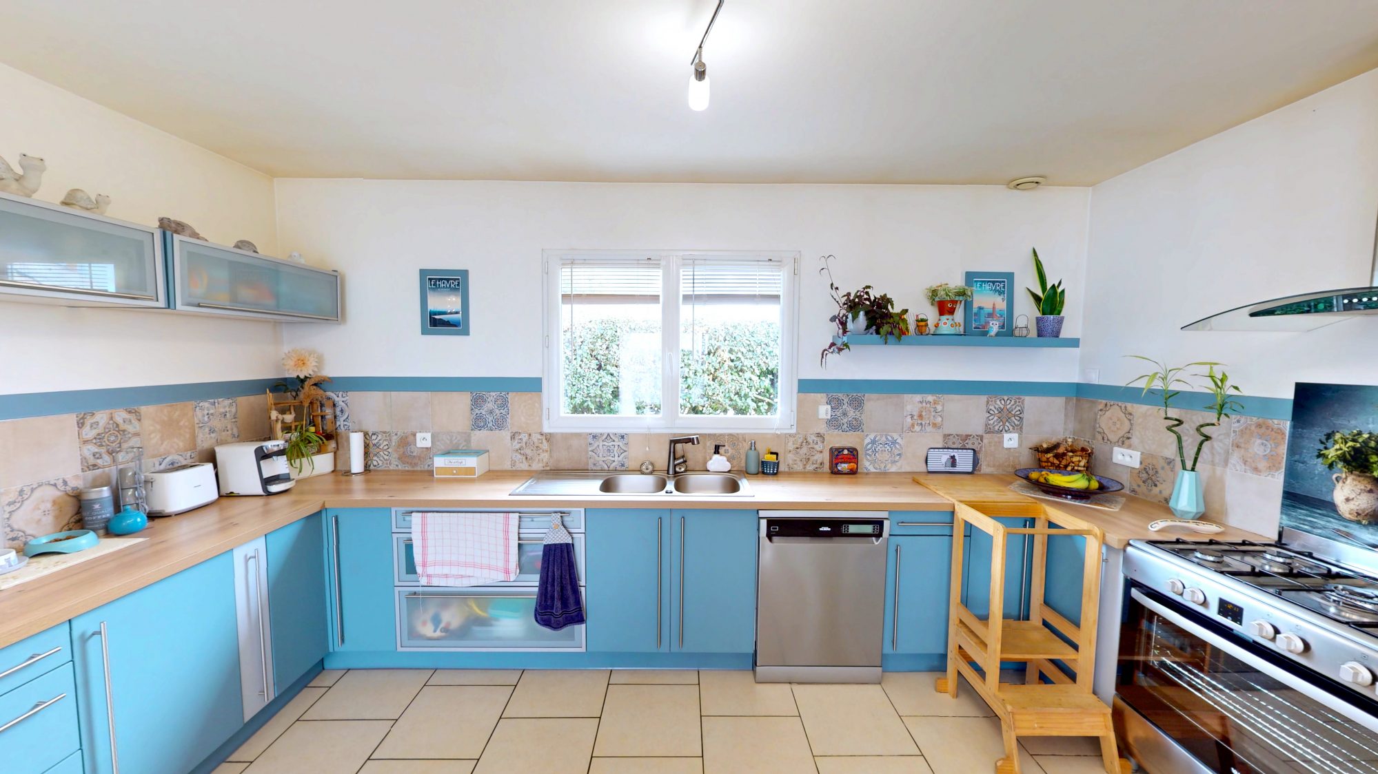 RDC : entrée avec placard, large pièce de vie de 60m2 exposée SUD/OUEST comprenant un séjour/salon et une cuisine aménagée et équipée, quatre chambres, une salle de bain avec douche et un wc individuel