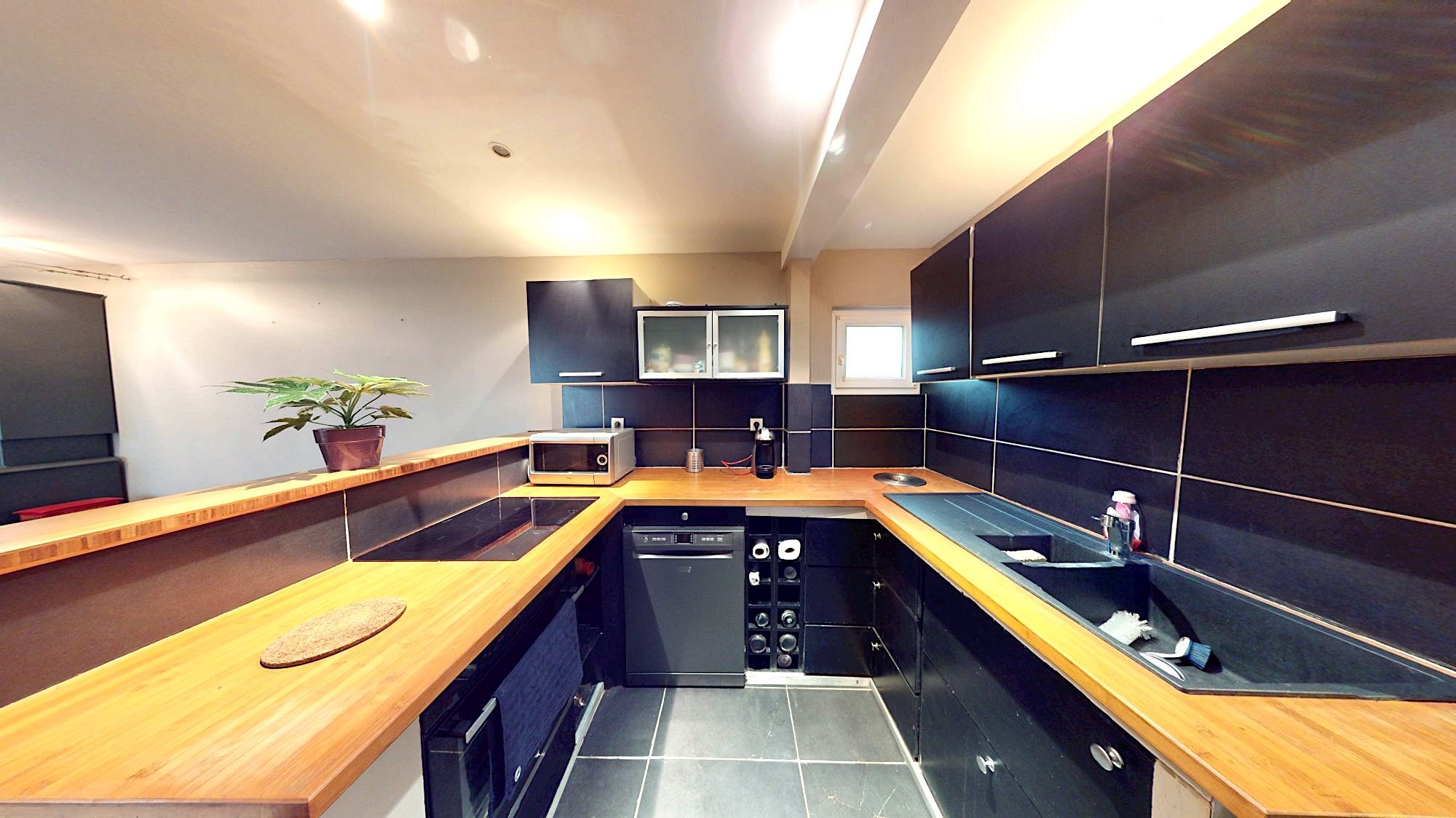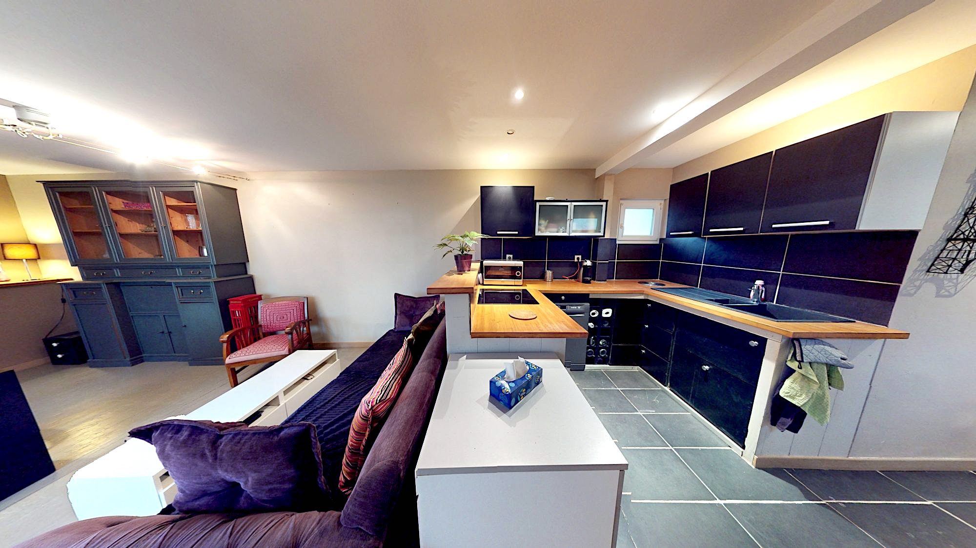 Il se compose d’une pièce de vie de 31 m2 comprenant un séjour / salon et une cuisine équipée et aménagée, une salle de douche avec WC, une chambre au niveau principal, ainsi qu’une seconde chambre de 16,8 m2 située en souplex.