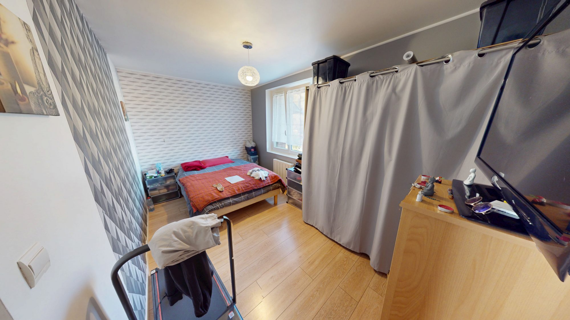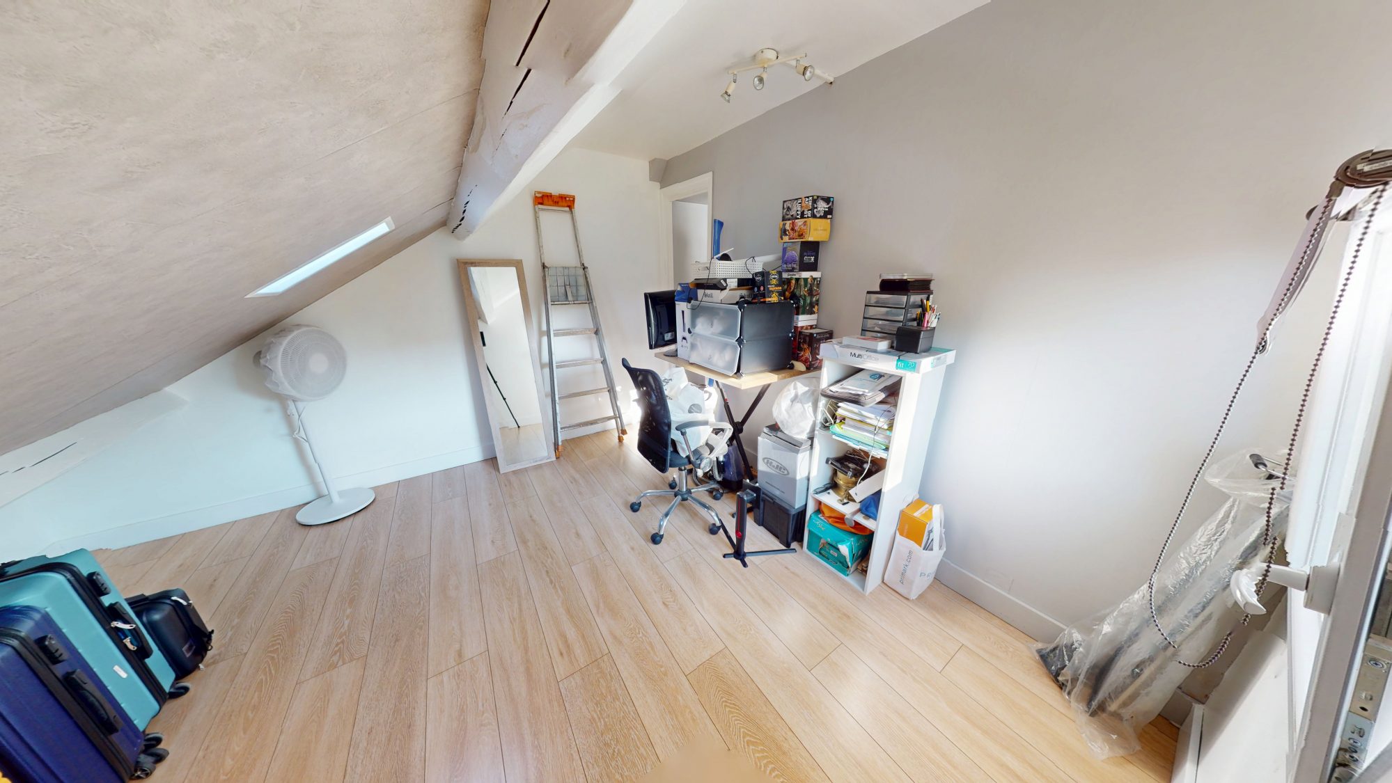À l’étage : un palier desservant trois chambres dont une en enfilade.