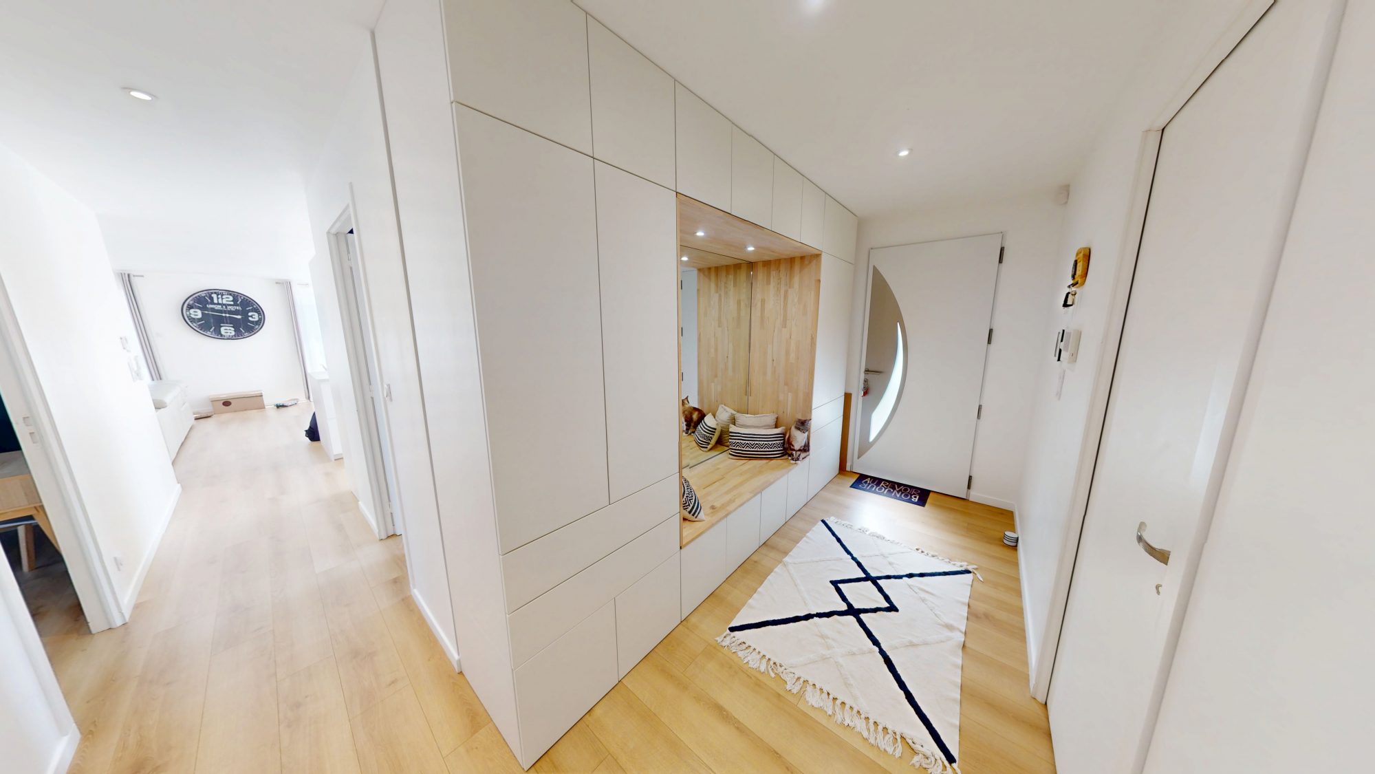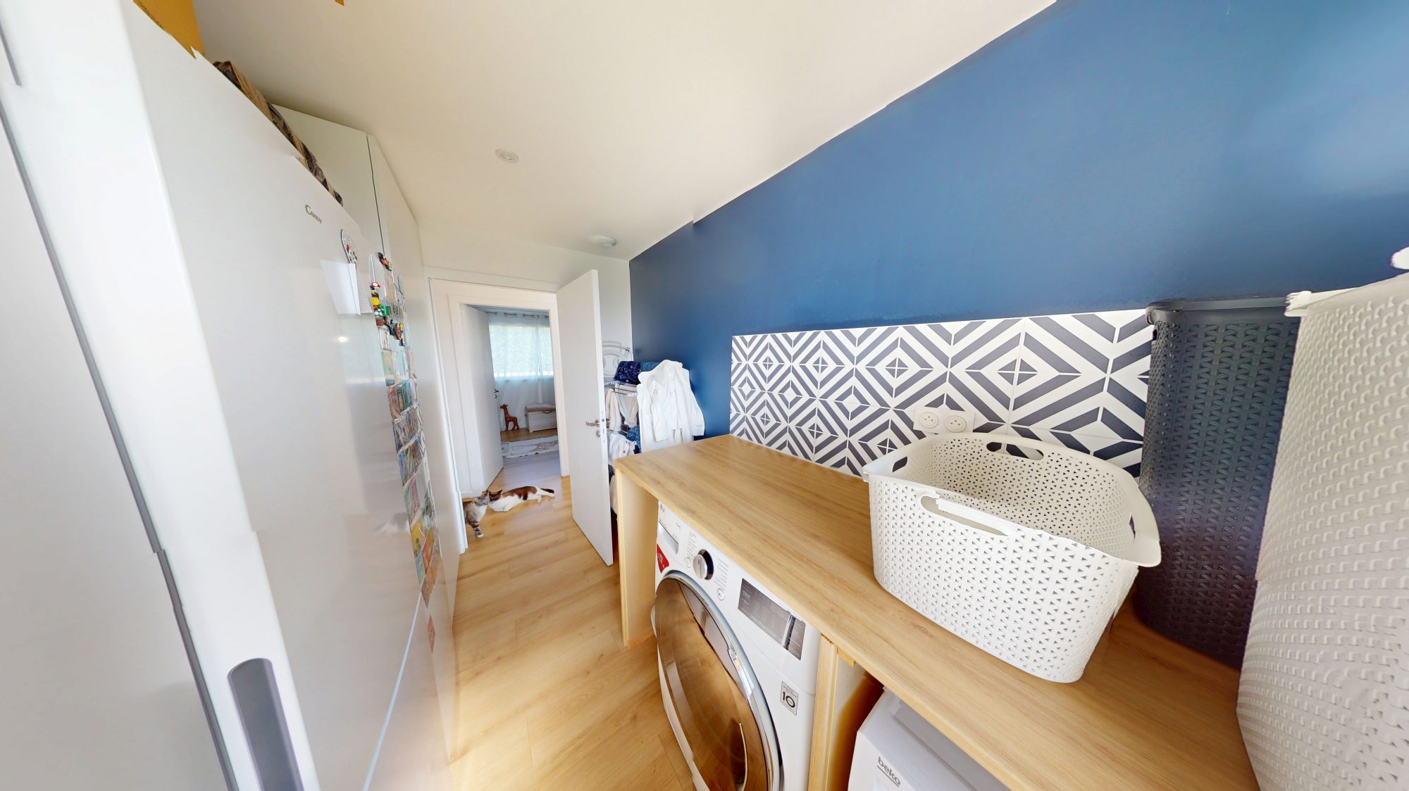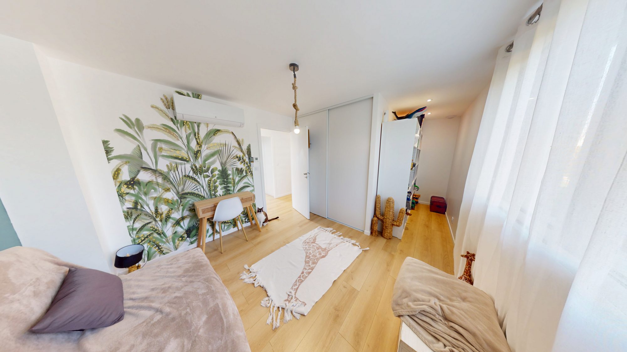 – RDC : entrée avec dressing sur mesure, séjour/salon de 48m2 exposé SUD/OUEST avec accès terrasse, cuisine aménagée et équipée, buanderie avec chute de linge en inox, une chambre (14m2), W.C. individuel.
