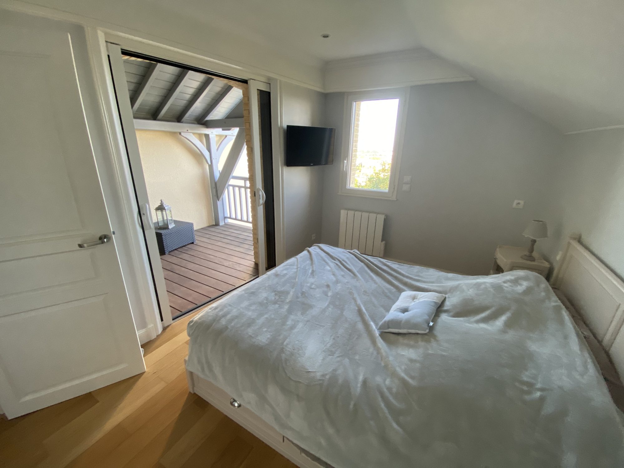 2 chambres, une salle d’eau avec WC et une salle de bains avec douche et baignoire.